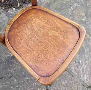 Chaises Années 20 en hêtre courbé. Dossier à 2 barreaux horizontaux et Assise avec décor Art Nouveau