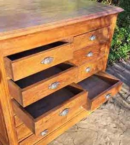 Meuble en chêne massif 12 tiroirs avec poignées coquille